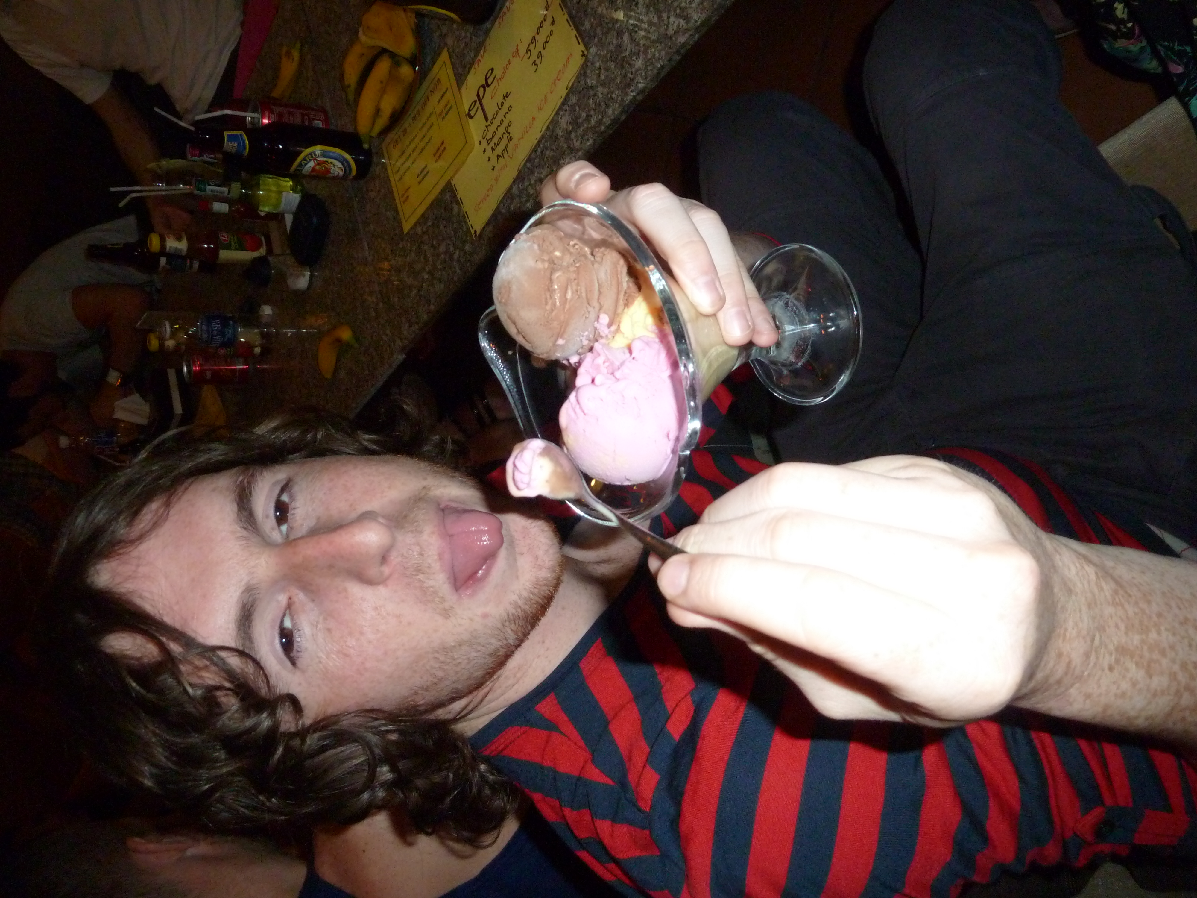 That night was our last night in a main town – the next two days will be spent on the Mekong River on a slow boat north to the Thai border. Ricky was preparing to leave the group, as he is meeting a friend in Chiang Mai, and so it was our last night all together on the tour.