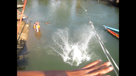 The result: having just gallantly got the rope for two good looking girls in front of me, who were now watching from the side, I stepped off the tree, the rope tightened around my hand, some knots whipped around it and took off some skin, and I clumsily dropped into the water in a heap.