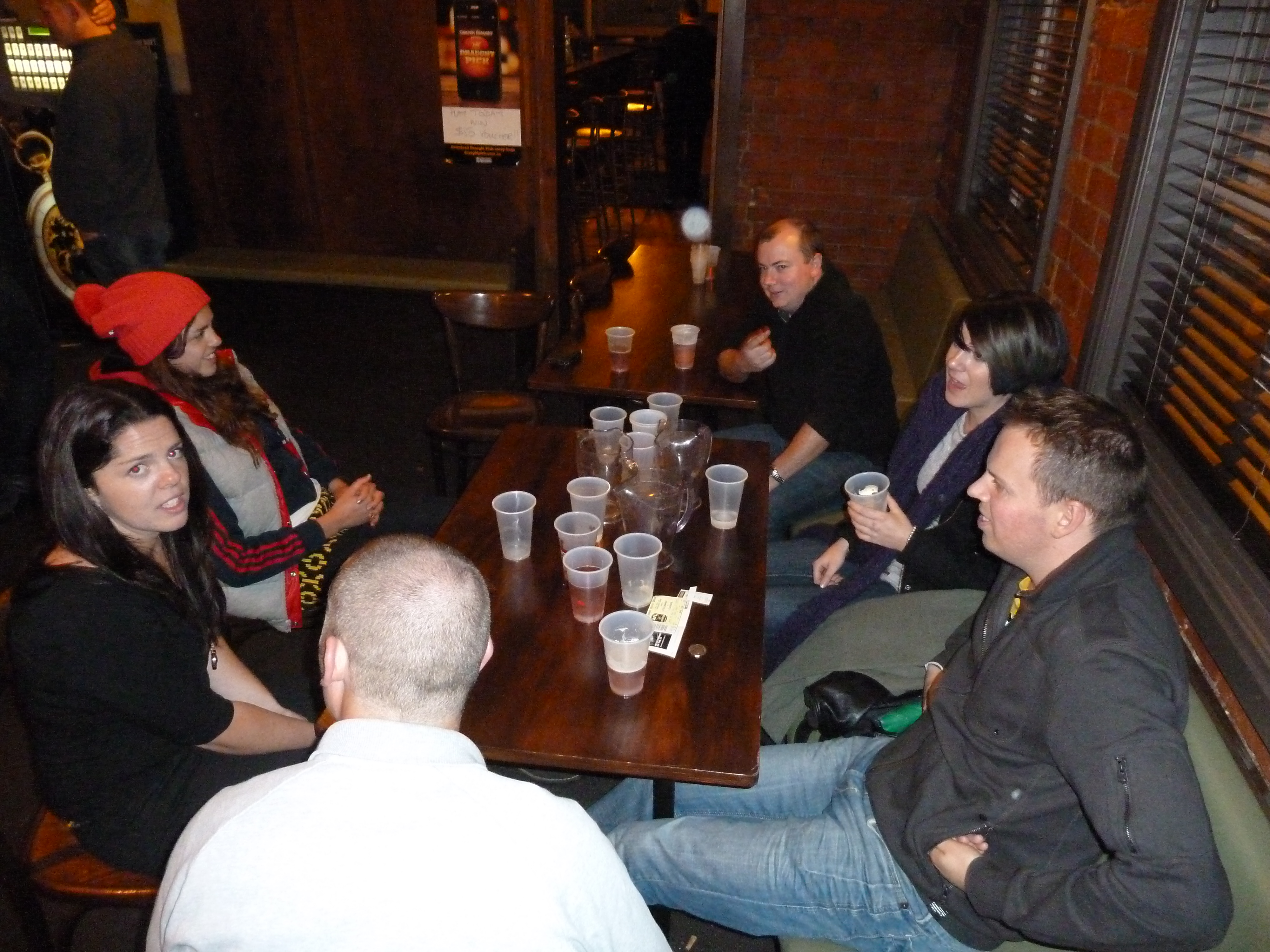 Finally, there was Rosie, one of my dive buddies from my Padi diving course in Koh Tao, who managed to make it to say goodbye towards the end of the night. She pulled up a seat beside me and we chatted about the last few weeks since we met, and what my travel plans were. The best thing was, even though I now had three friends from different parts of my life sat around the same table with me in a Melbourne pub, everyone got on incredibly well, as if we all went way back. I made sure I got a photograph of us all together before Rosie had to leave, and we made our way out to another bar.