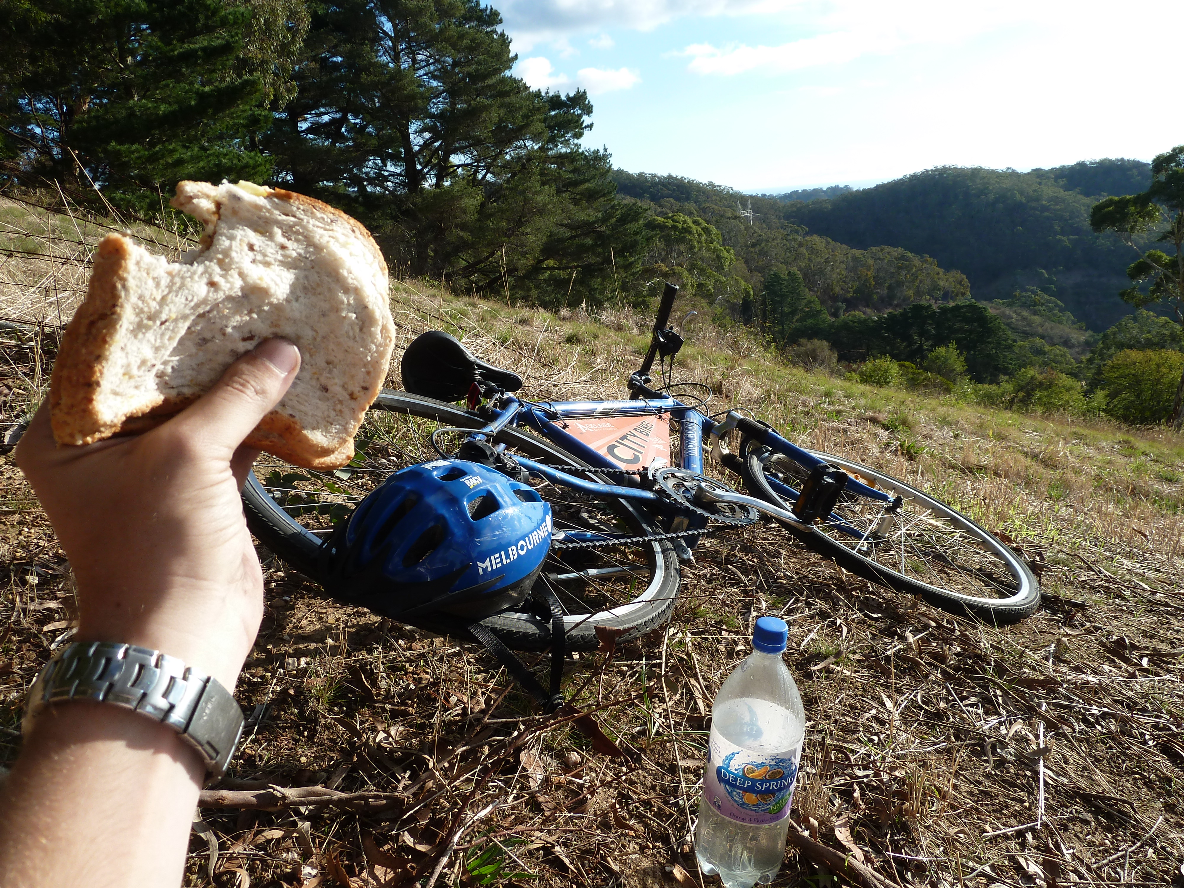 He was right, it was basically a shopper bike, complete with a basket on the front, but as I set off down the road it was actually very easy to ride. I cycled for about three quarters of an hour before reaching the steeper parts of the Adelaide hills, and that’s when it got tough. With sweat pouring off me after one particularly steep climb, I stopped for a breather. I could already see I was making good progress up the mountain, and behind me the city skyline was already below me and far in the distance.