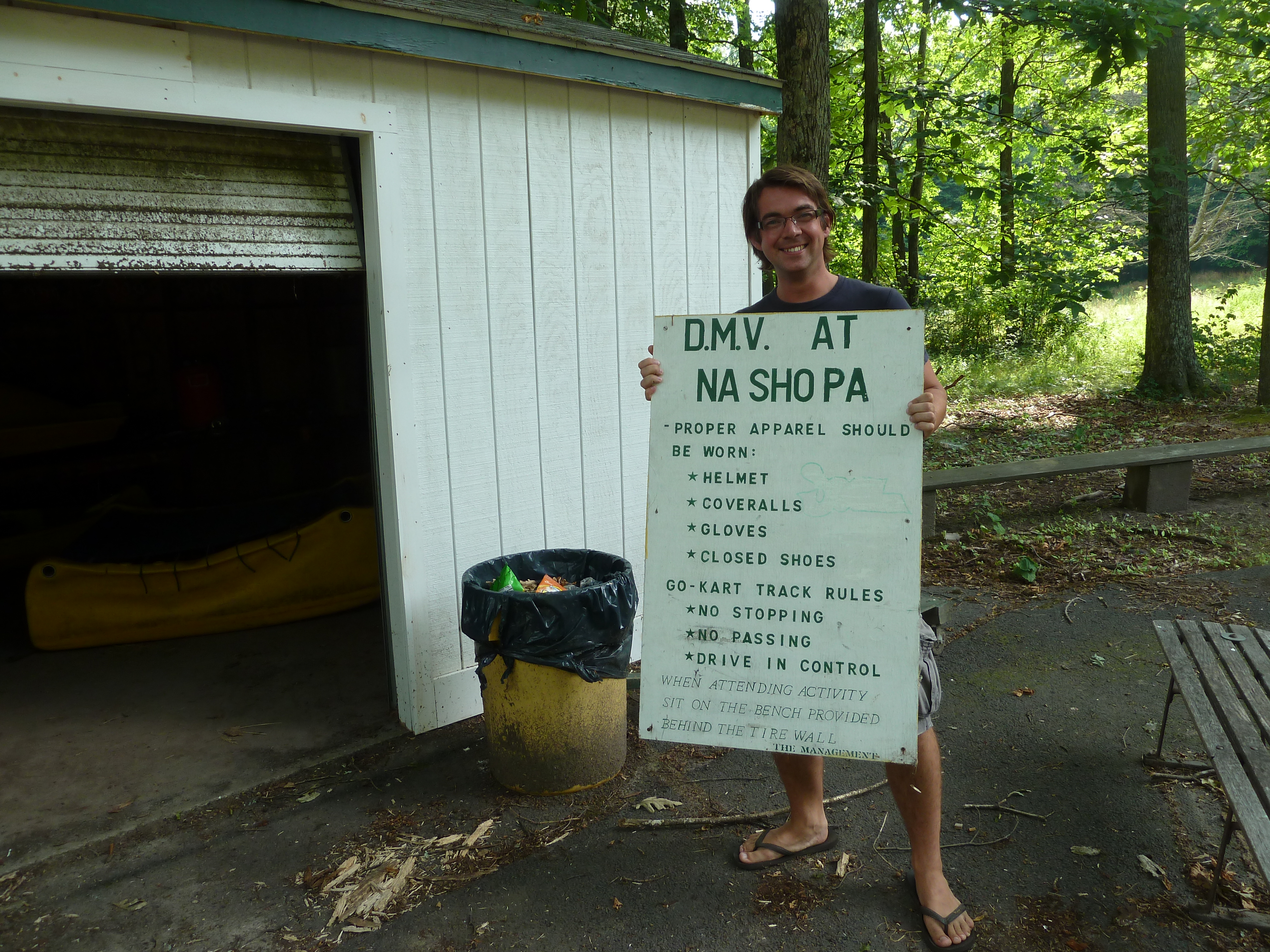 As I looked around the shed, there were remnants left behind from the go-cart days, including the old sign board we used to have next to us with the rules for kids to follow.