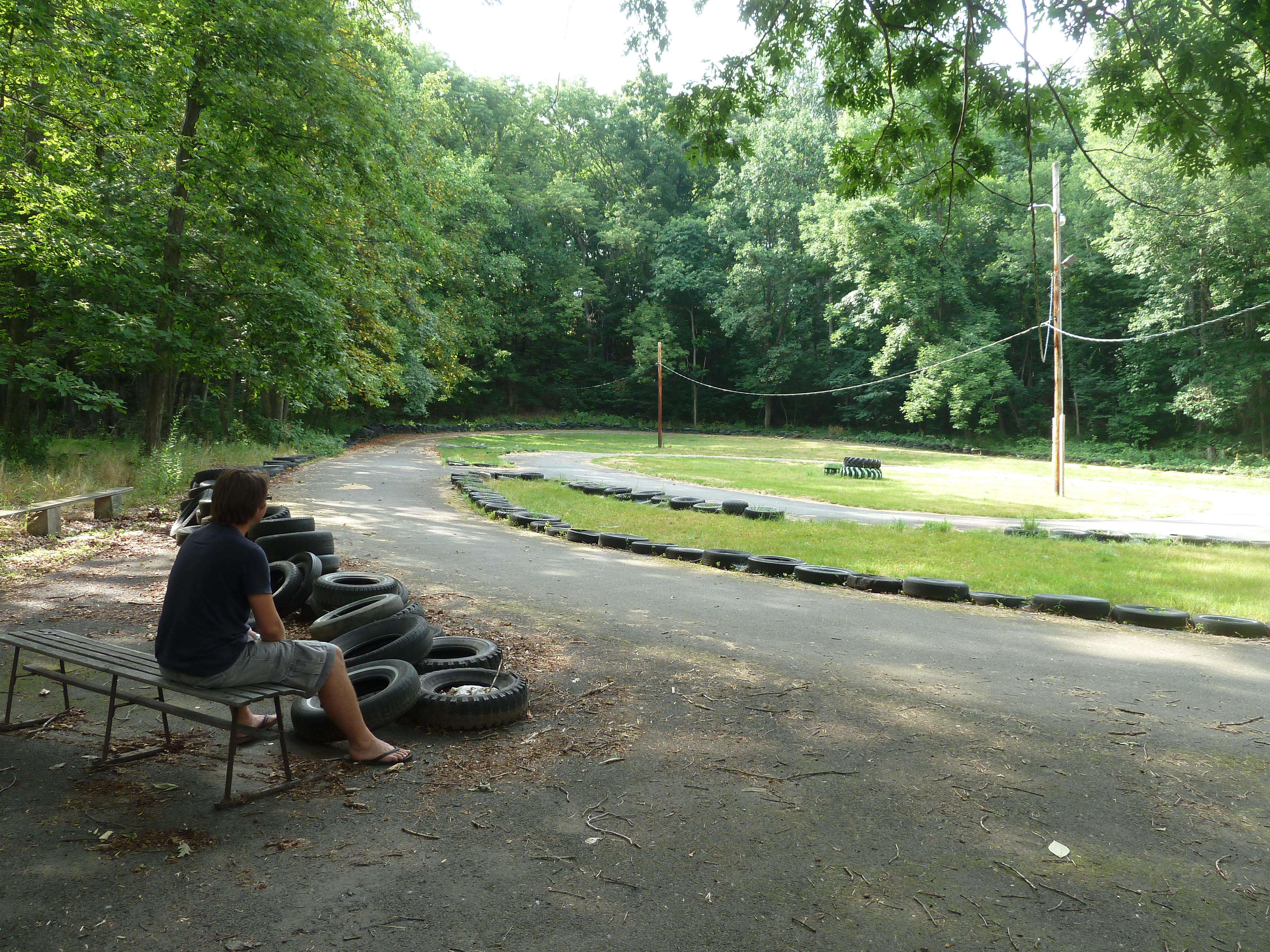 Ian was a go-cart specialist counselor the year before me, so he too was keen to have a look around. It was only a short walk along the quiet rural road before a gap in the trees opens out onto the track. Its not used for go-carts anymore, and the surface is breaking up in parts, but the tyre walls that Ian once built were still in place. It was a surreal feeling to step onto the tarmac again after so long, but yet it only felt like yesterday that we were both last here. We could almost hear the sounds of the engines as the excited children would race around, us keeping an eye on them and ready to run the moment one of them would stick their front end into the tyres (it happened quite a lot!)